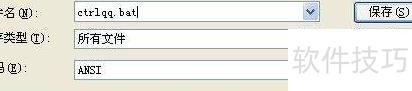6、 将文件保存为所有文件类型,并以.bat命名。