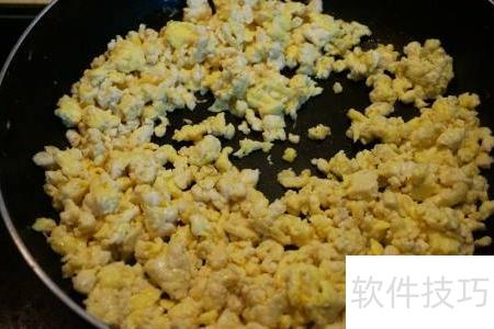 4、 锅中放少量油,放入豆腐小火翻炒至水分干,呈松散状即可。