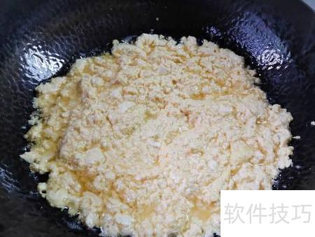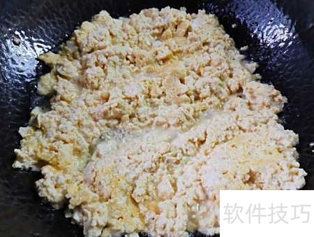 5、 锅中加油烧热,放入刨好的豆腐碎翻炒。