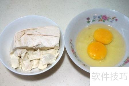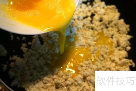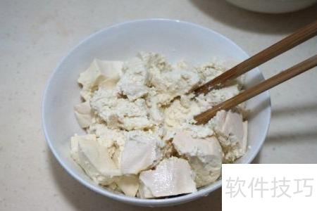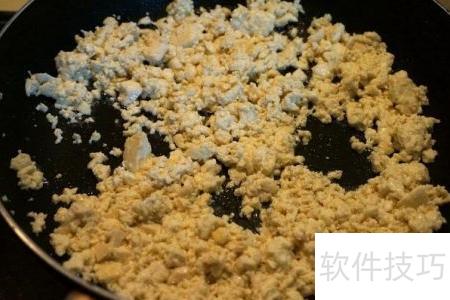 4、 锅中放少量油,放入豆腐翻炒至水分蒸发,呈松散状即可。
