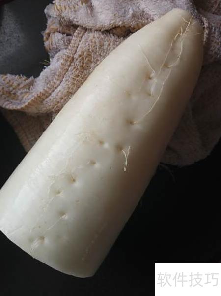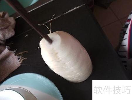 3、 将筷子从萝卜中心穿过,至少深入至中段,确保稳固,防止中途脱落。