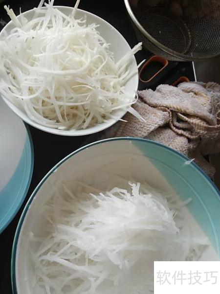 2、 教你一招轻松去皮切丝法,不伤手且快速高效,只需一个大萝卜,简单几步即可完成。