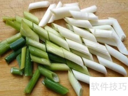 8、 将豆腐压碎不切,蒜剁末,葱斜切成丝备用。