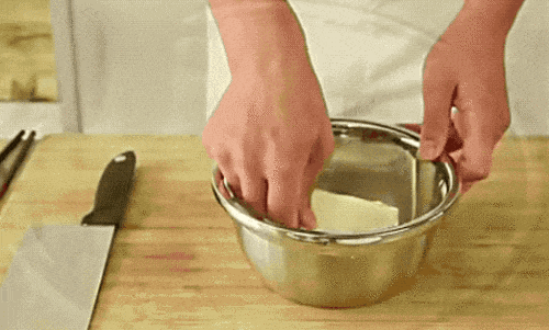 1、 将豆腐放入盆中,用小勺轻轻压碎,放置一旁备用。