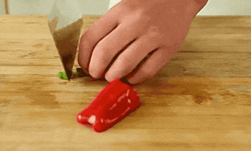 3、 将葱洗净切碎,红椒切丁,一同装盘备用。