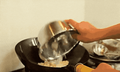 6、 锅中放入盐和白胡椒粉,翻炒至均匀入味。