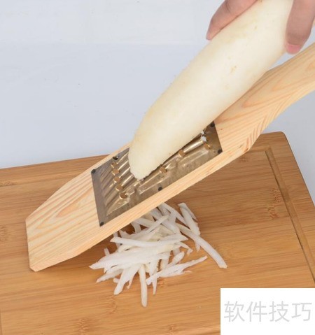 2、 将筷子平行放在食材下方,再进行刨丝,能有效防止手指被划伤,操作更安全便捷。