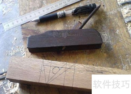 3、 选取纹理通直且耐磨的一面作为刨底,另一面则选用材质优良、纹理顺畅并覆盖刃口倾斜部分的为上表面,以一侧边为基准进行划线。使用角尺在刨底标出刃口安装的基准线,并划出前端稍长于后端的刃口轮廓线,同时依据刨刃在刨床中的倾斜角度与坡度比例进行精确绘制。