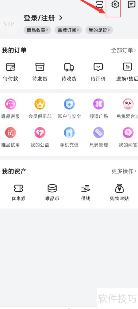 1、 进入唯品会后,打开个人中心,点击右上角的设置图标即可进入相关页面。