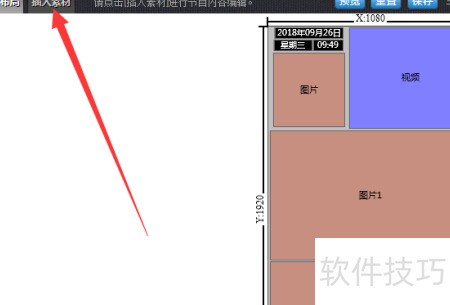 4、 进入节目编辑界面,选择插入素材功能。