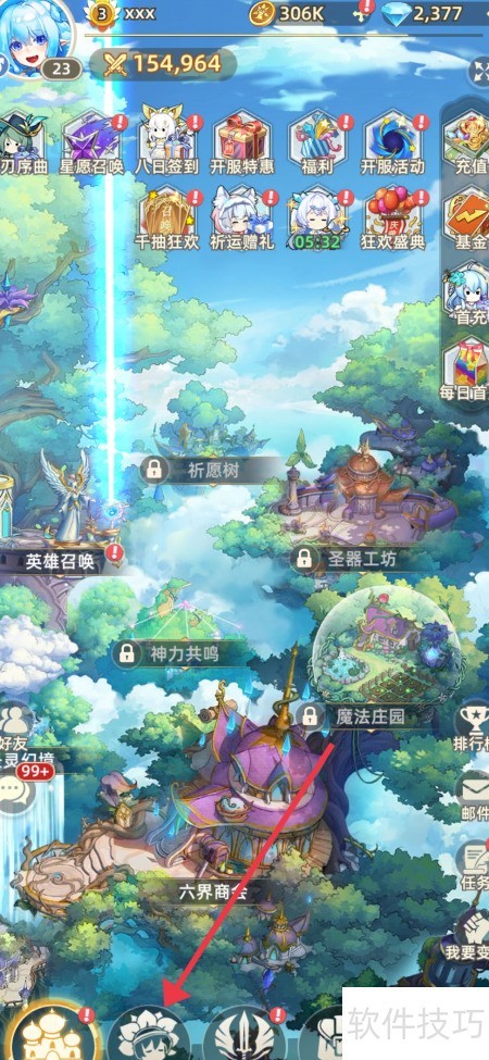 1、 启动万灵幻想,进入游戏后点击英雄图标即可。