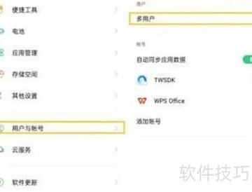 1、 进入手机设置,选择用户与账号,开启多用户功能。