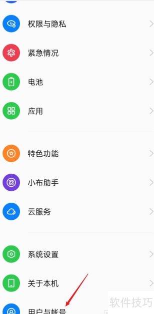 2、 进入手机设置,选择用户与账号选项。