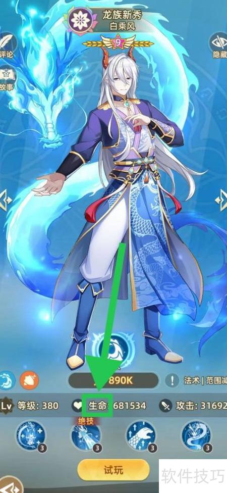 3、 进入白乘风页面后,点击生命选项即可完成。