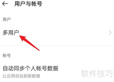 4、 进入用户与账号界面,点击顶部多用户选项。