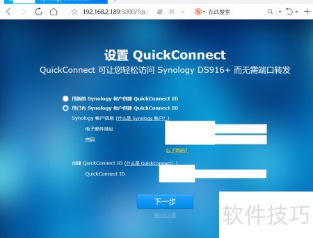 7、 最后配置QuickConnect,可选择创建新用户或使用原有账号登录。我选择旧账号登录,完成设置和绑定操作,全部流程顺利结束。