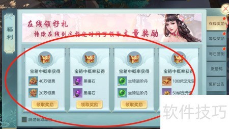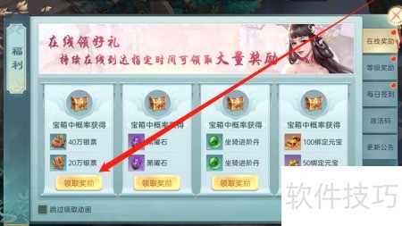 3、 点击领取奖励按钮即可获得在线奖励