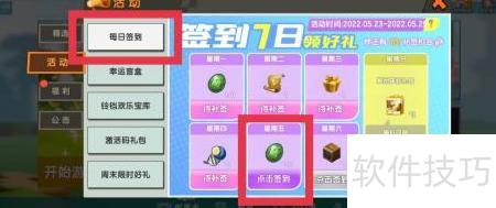 2、 进入活动页面,点击每日签到区域的签到按钮即可完成签到。