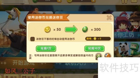 7、 此时将弹出迷你币兑换迷你豆的页面,玩家可在该页面使用迷你币兑换迷你豆。
