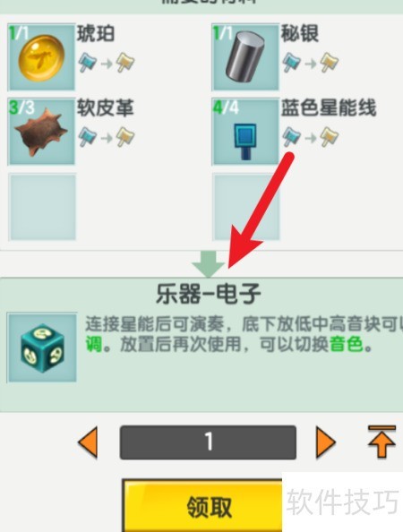 5、 用琥珀、秘银、蓝星能线与软皮革打造电子乐器。