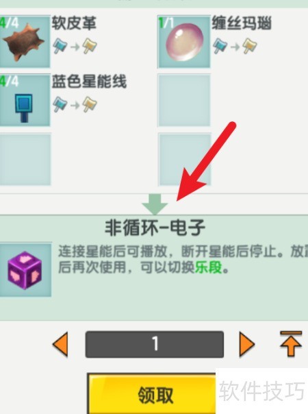 4、 用软皮革、缠丝玛瑙与蓝星能线合成非循环电子组件。