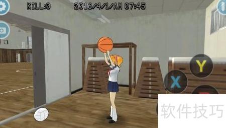 5、 进入体育馆体验运动,按下X键蹲下,再按B键拾取篮球,可自由操作投篮,具体操作所示。
