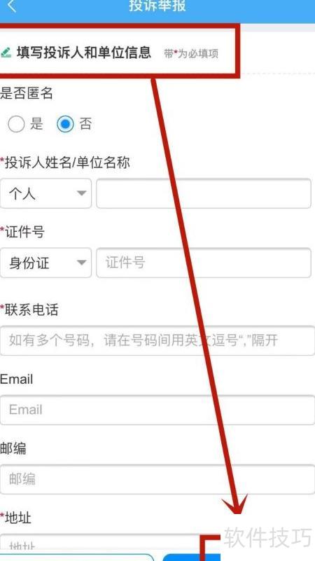 3、 填写投诉人资料后,点击下一步。