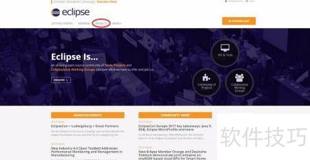 1、 访问Eclipse官网,点击页面中红色圈出的PROJECTS选项。