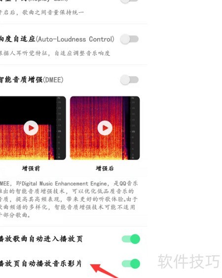 4、 开启右侧开关,播放页面将自动播放音乐视频。