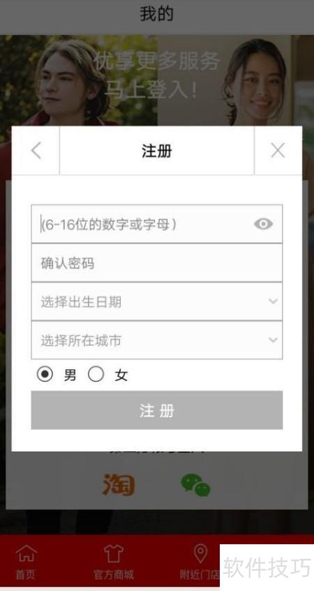 5、 填写密码、出生日期、城市和性别,点击注册即可完成。