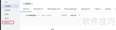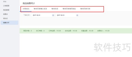 4、 可筛选交易成功、待买家收货等不同订单状态进行分析。