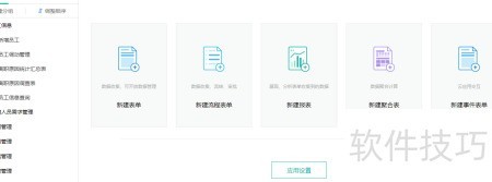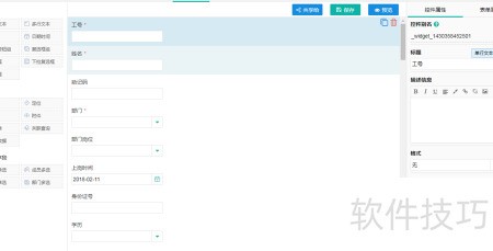 6、 进入设计页面后,所有功能均由五个表格及其字段控件构成,支持删除原有内容或添加新内容。