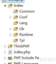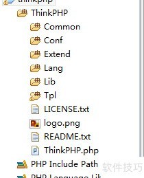 1、 创建名为thinkphp的PHP项目,解压ThinkPHP框架包,将其中的ThinkPhp文件夹复制至项目目录,最终目录结构所示。