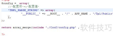 9、 在项目中创建名为Conf的公共文件夹,并在其中新建config.php文件,用于集中管理公共配置信息。本例中主要存储数据库配置,其他特殊配置也可单独存放于此文件中,便于统一维护与调用。