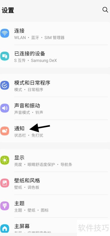 2、 打开Galaxy S23 ultra的设置,进入通知选项进行配置。