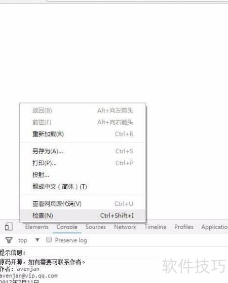 15、 使用Chrome浏览器打开创建的文件,右键点击检查,切换至Console标签页,即可查看代码生成的内容。