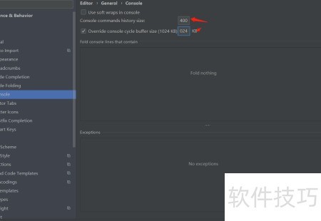 6、 在右侧可找到控制台命令历史记录大小的设置选项。