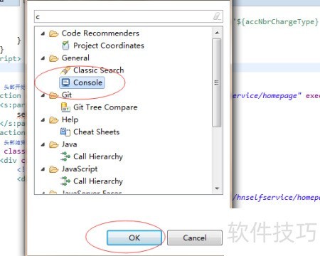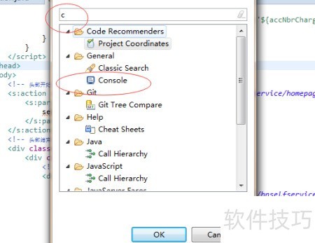 5、 输入后会出现多个首字母匹配项,找到目标console并选中,点击确定即可,所示。