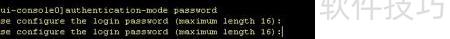 3、 进入console接口模式后,设置验证方式为密码认证。