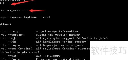 3、 检查Express是否全局安装成功,可使用命令:express -V(大写V)或express -h进行验证。