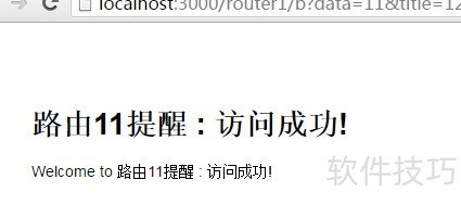 58、 打开浏览器,输入地址 http://localhost:3000/router1/b,附带参数 data=11 和 title=12,进行页面访问。