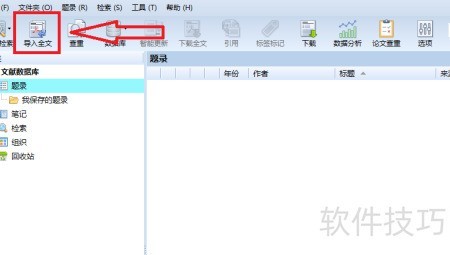 7、 在Note Express界面顶部点击导入全文按钮即可完成操作。