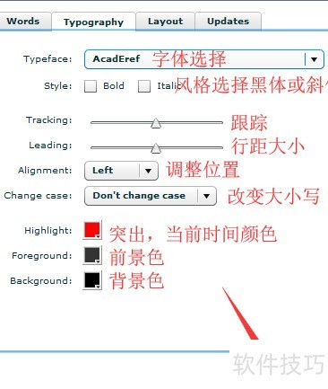 7、 在排版设置中,可自定义字体、样式、字间距、行高、位置、大小写、时间颜色及前景背景色,调整完毕后点击关闭按钮返回即可。