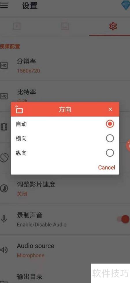 3、 进入设置,于视频配置中选取方向选项