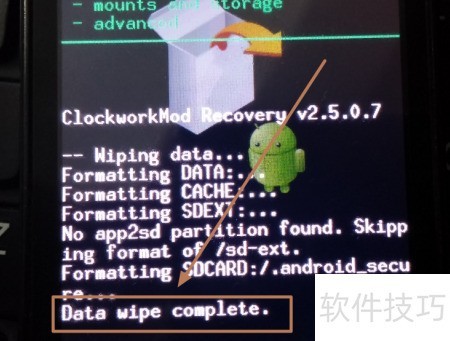 7、 完成WIPE操作后,进行两次即为双清,随后便可刷入新的ROM系统。