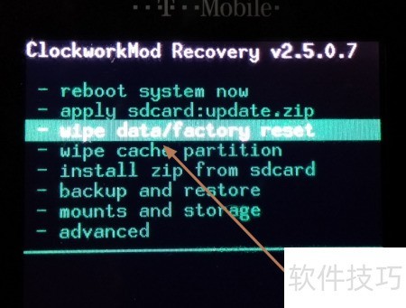 1、 首先将手机进入Recovery模式,不同机型进入方式略有差异。根据界面提示操作,选择清除数据选项,可删除已安装的应用程序及相关设置内容。