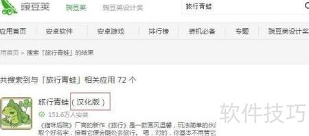 1、 在百度搜索豌豆荚,进入官网后搜索旅行青蛙,即可找到并下载该游戏的汉化版本。