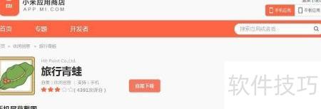 5、 可在手机应用商店下载小米应用,搜索旅行青蛙即可安装。