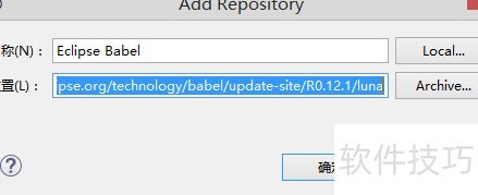 6、 在输入框中依次填入Eclipse Babel以及复制的地址http://download.eclipse.org/technology/babel/update-site/R0.12.1/luna,确认信息无误后,点击OK按钮完成操作。整个过程需确保网络畅通,避免地址错误导致加载失败。