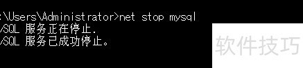 8、 停止MySQL服务,使用命令:net stop mysql。